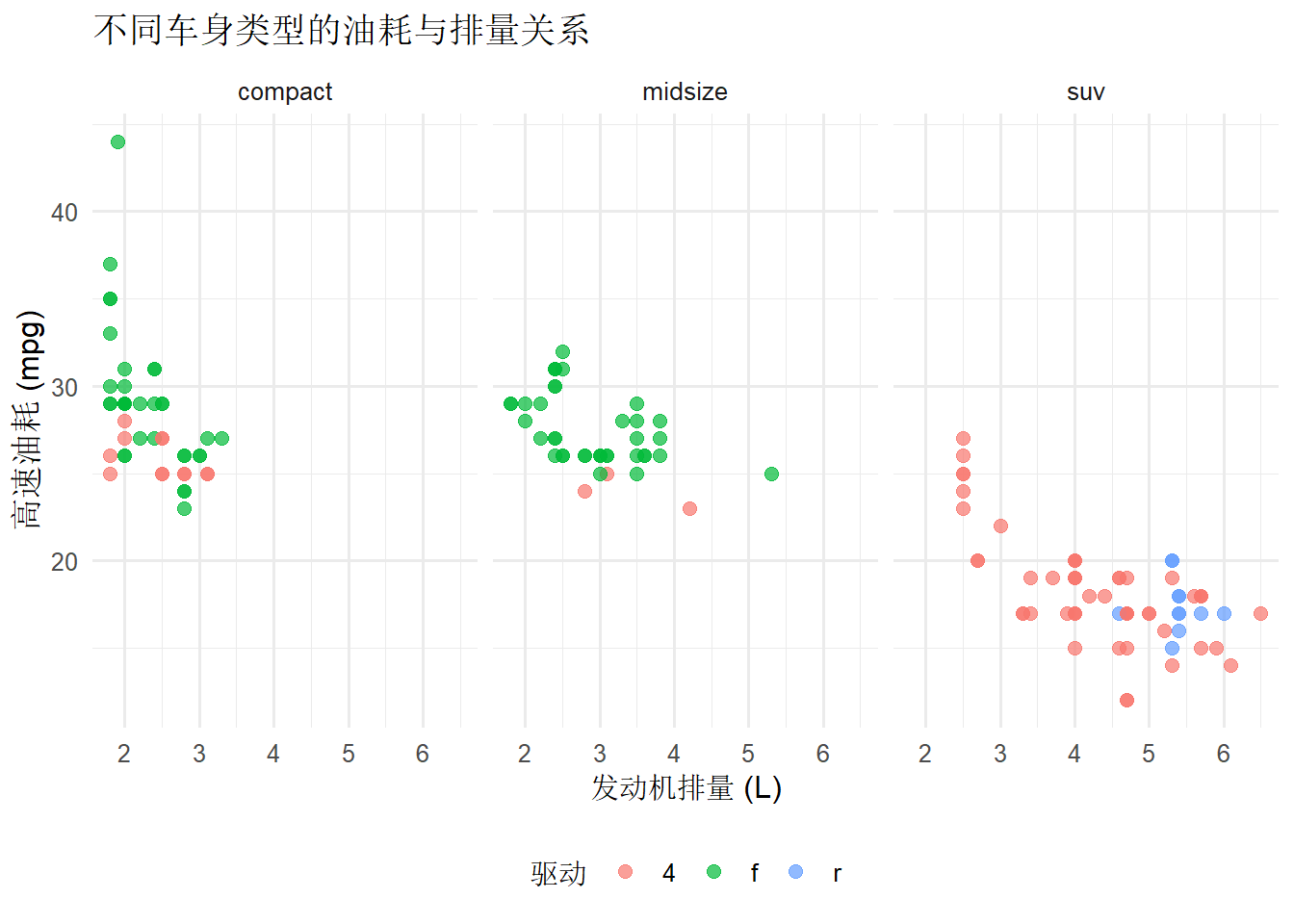 - 每个子图共享同一绘图语法,便于观察模式是否一致。